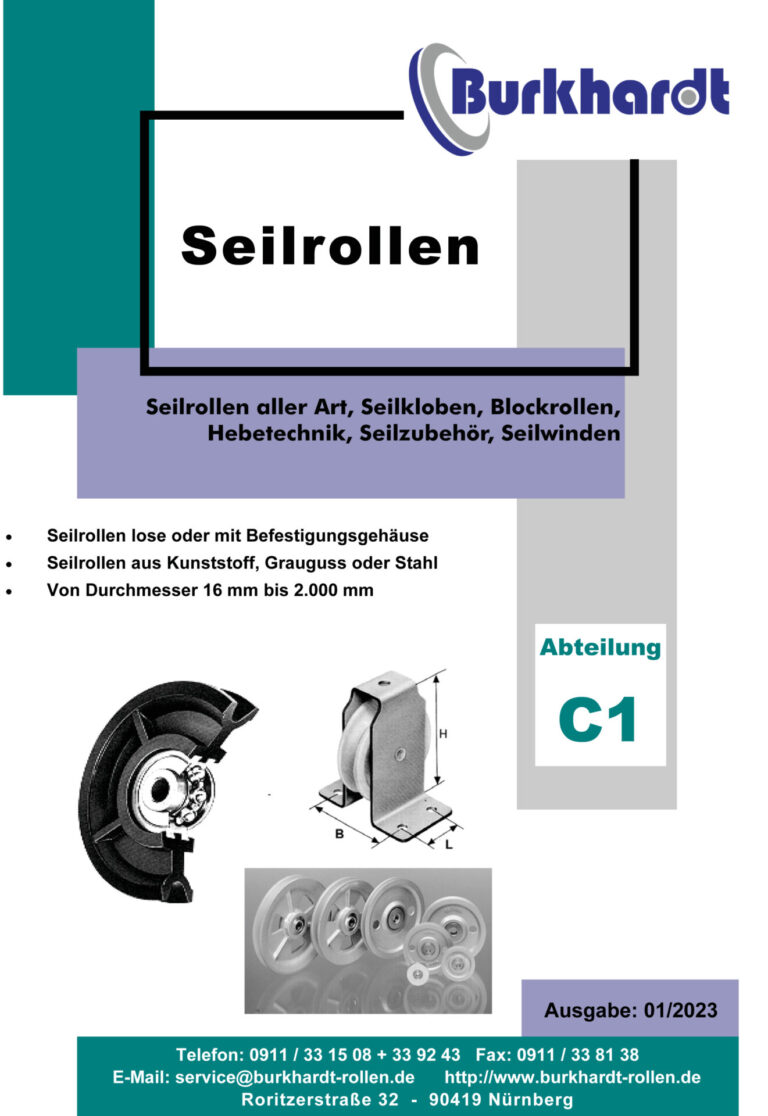 Sie finden in unserer Ableitung C1 zudem Seilrollen mit Gehäuse, die sog. Stehrollen, Seitenrollen oder Seilbockrollen.
